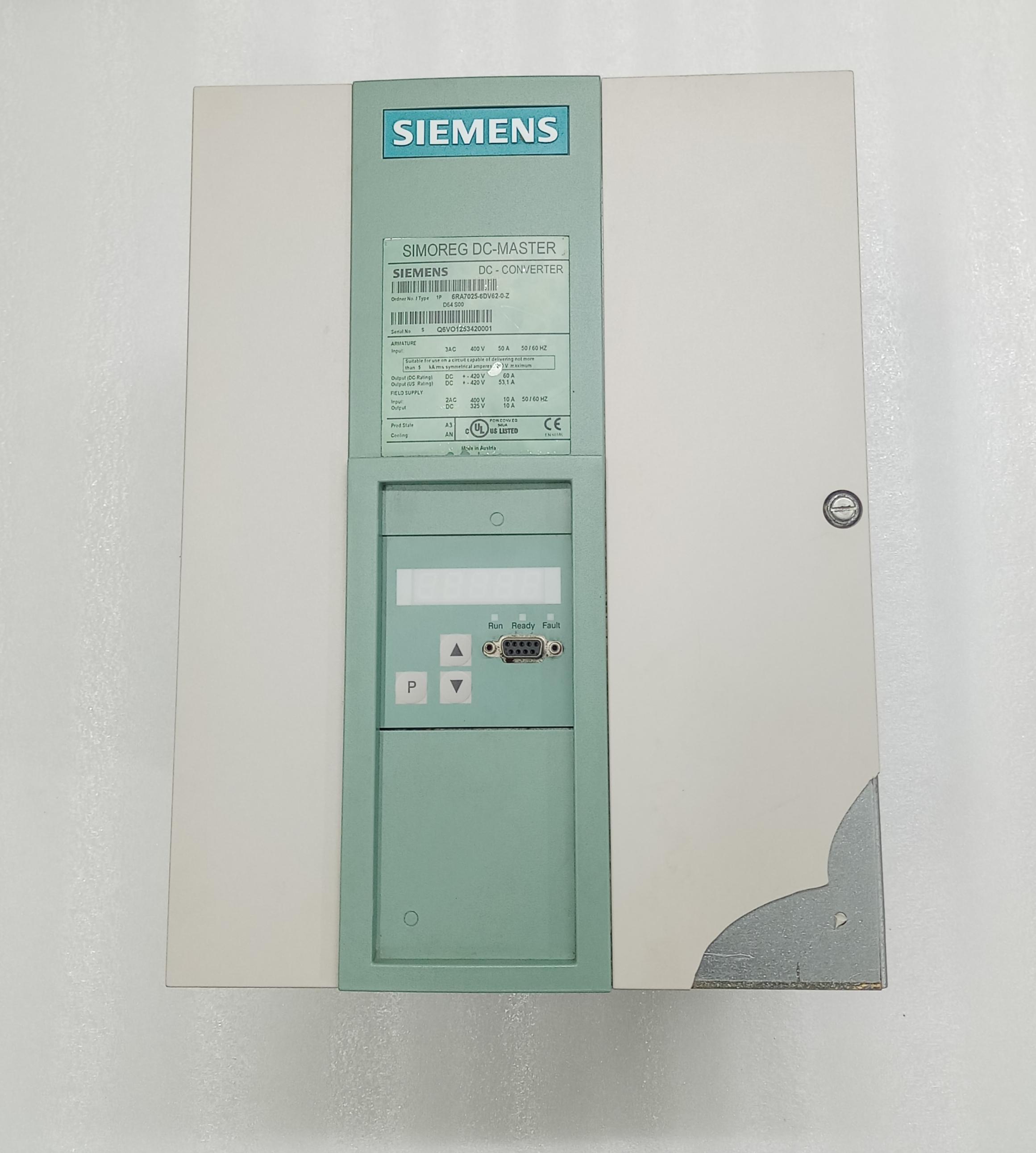The Siemens Simoreg DC-Master 6RA7025-6DV62-0-Z is a highly reliable and precise DC drive designed for controlling DC motors in industrial environments. It is part of Siemens' renowned SIMOREG family, known for robust performance in demanding automation and motor control applications.